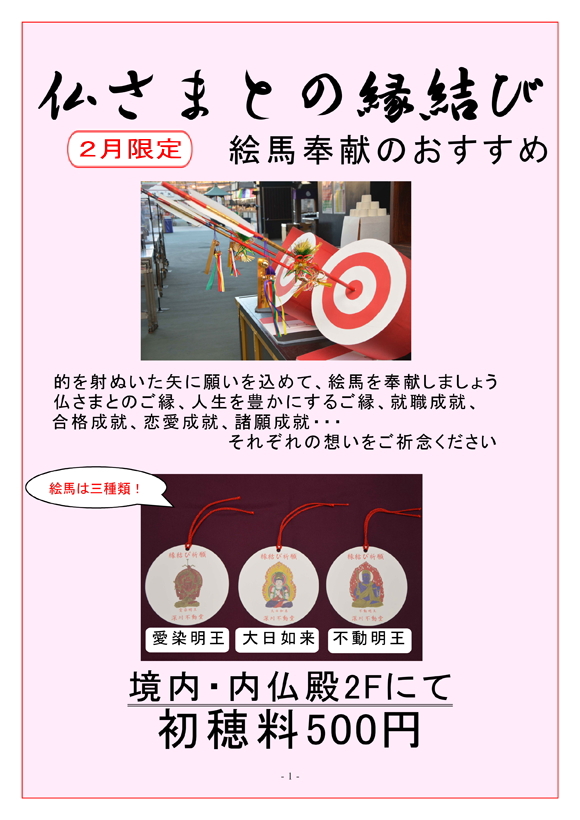 2月限定「仏さまとの縁結び」絵馬奉献のおすすめ
